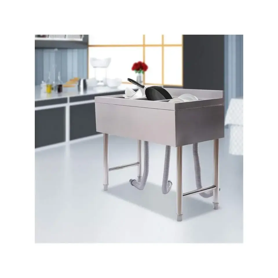 Évier utilitaire commercial en acier inoxydable à 3 compartiments avec robinet 10 \ "L X 14 \" W X 10 \ "D bol pour restaurant et bar