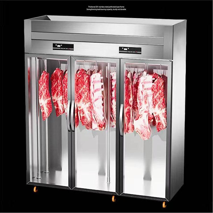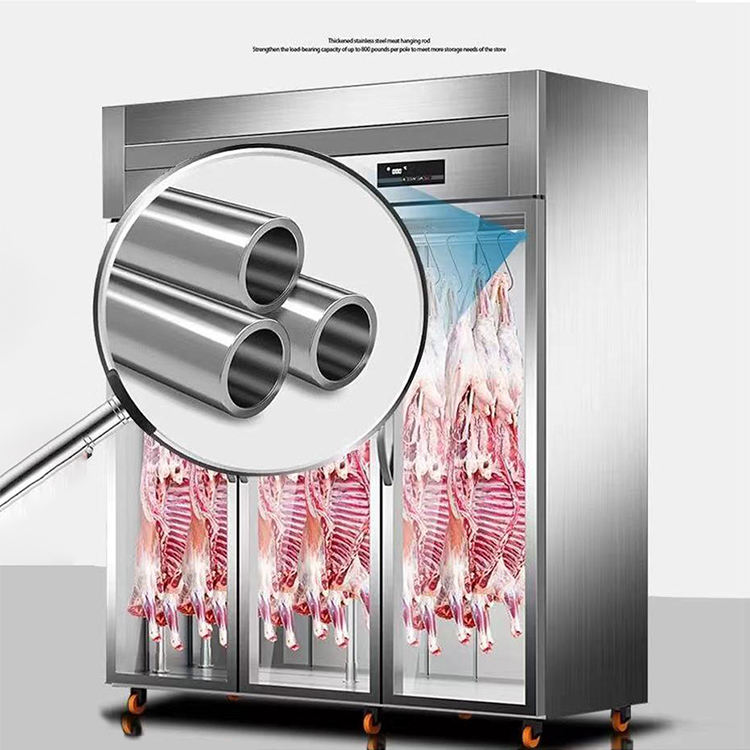 Vitrine verticale commerciale pour viande, design suspendu, avec équipement de réfrigération, congélateur sécurisé pour viande fraîche, présentoir de produits frais