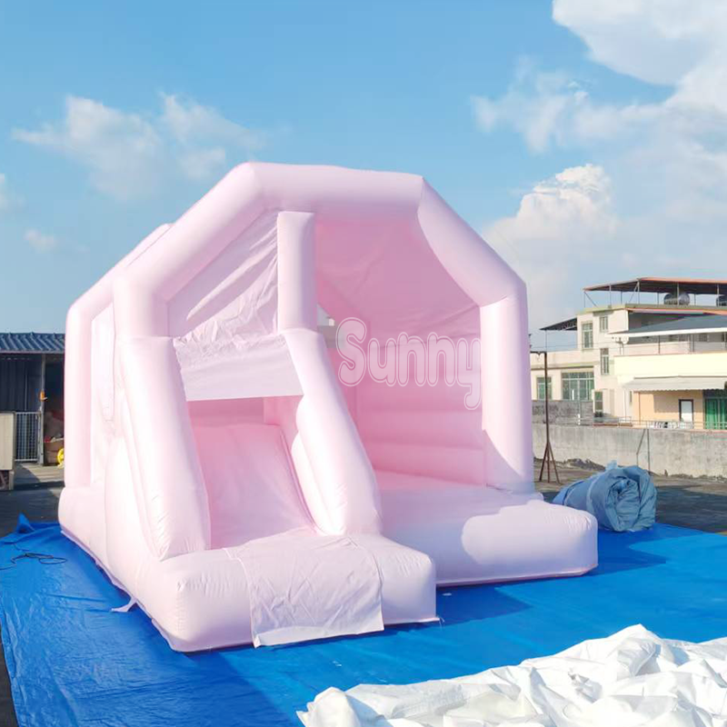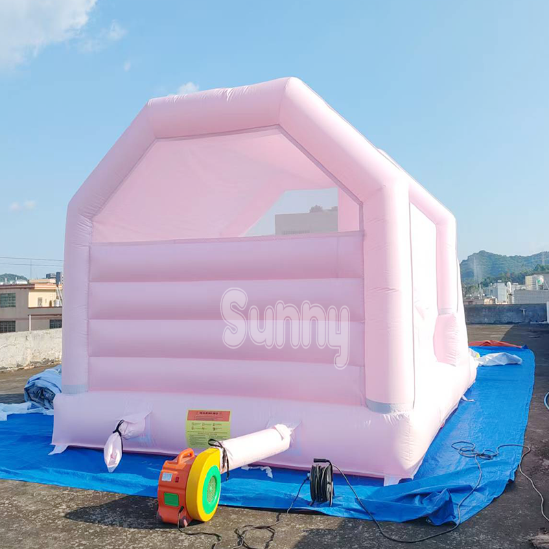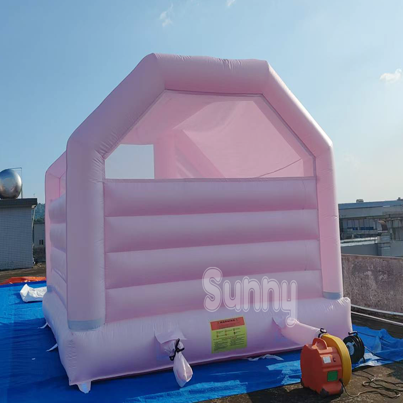 Château gonflable commercial blanc et rose pour enfants, idéal pour les mariages