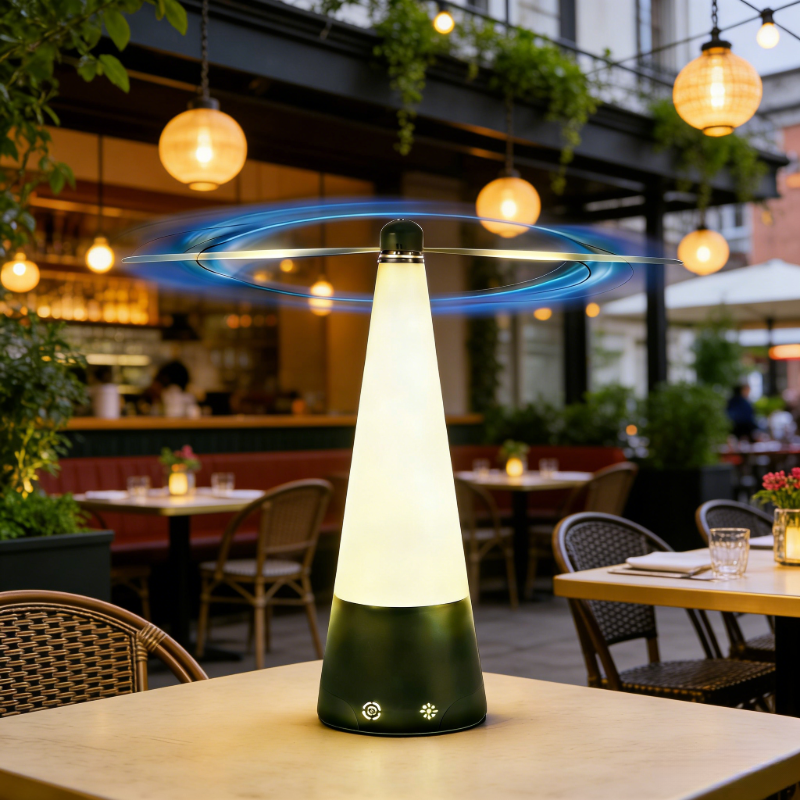 Ventilateurs anti-mouches personnalisables en gros pour tables, rechargeables par Type-C et avec crochet, pour restaurants et cafés en extérieur
