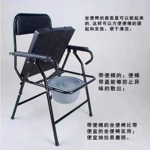 Chaise de toilette pliante avec seau pour personnes âgées et femmes enceintes, grande taille, design carré noir
