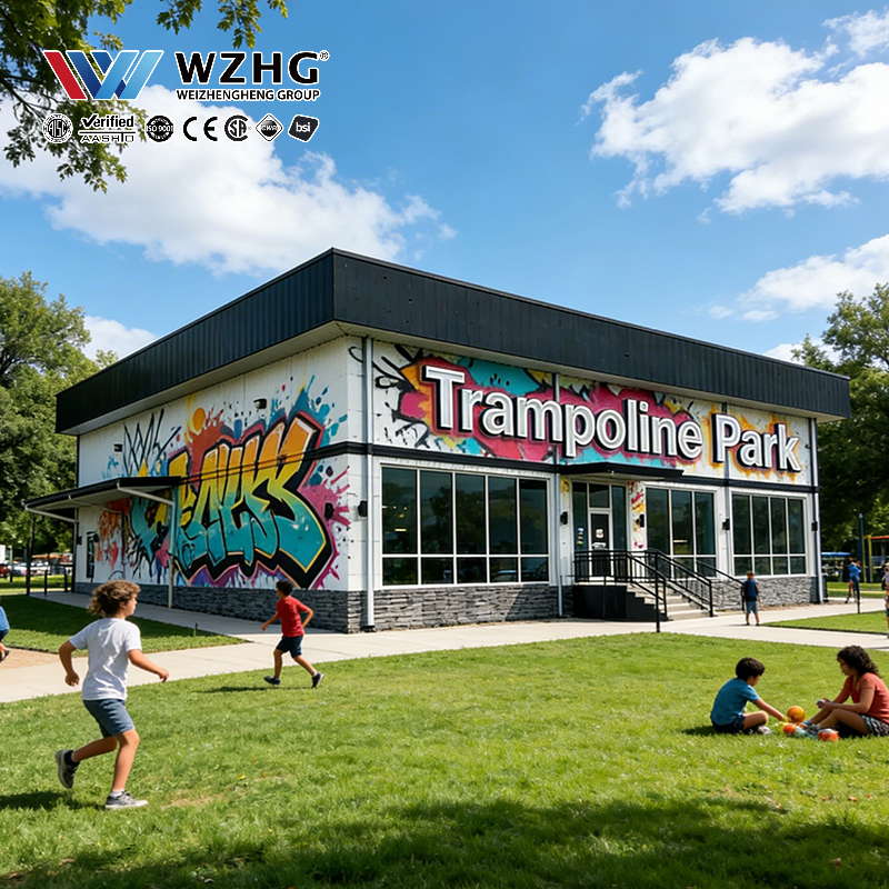 Parc de trampolines sportifs communautaires à structure en acier certifiée, assemblage rapide, écoénergétique, vente en gros, robuste