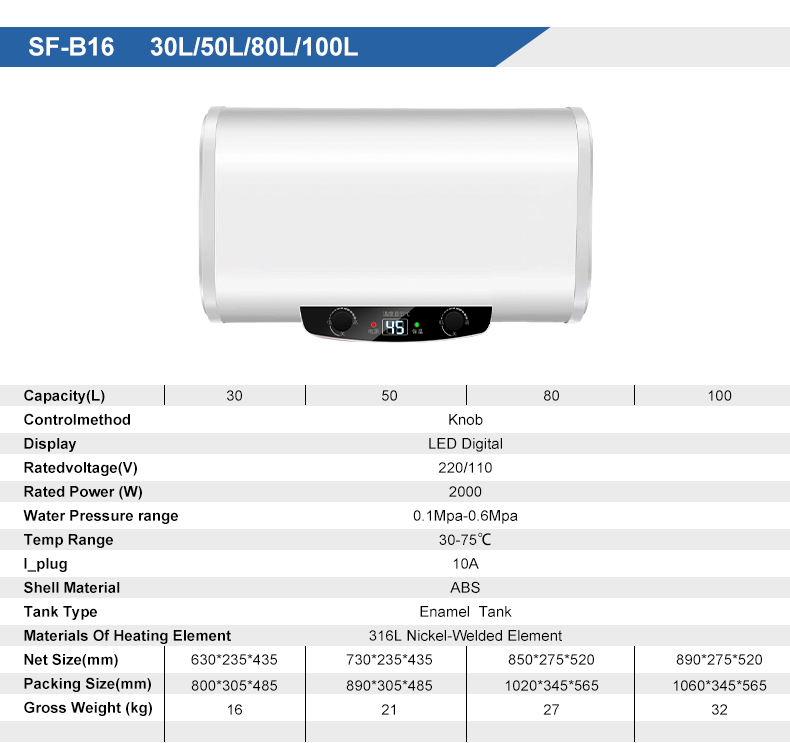 Chauffe-eau électrique compact 30/50/80/100L Classe A+ à haute efficacité énergétique pour cuisine, salle de bain, hôtels, voitures, petits appartements