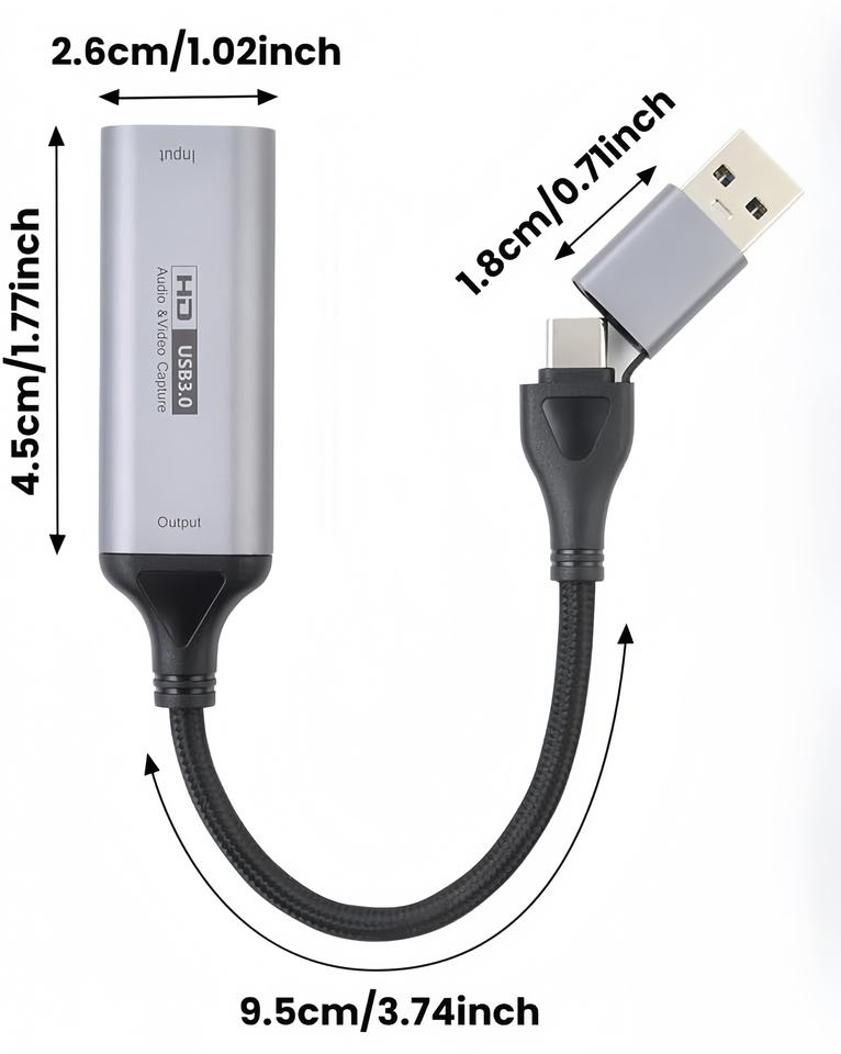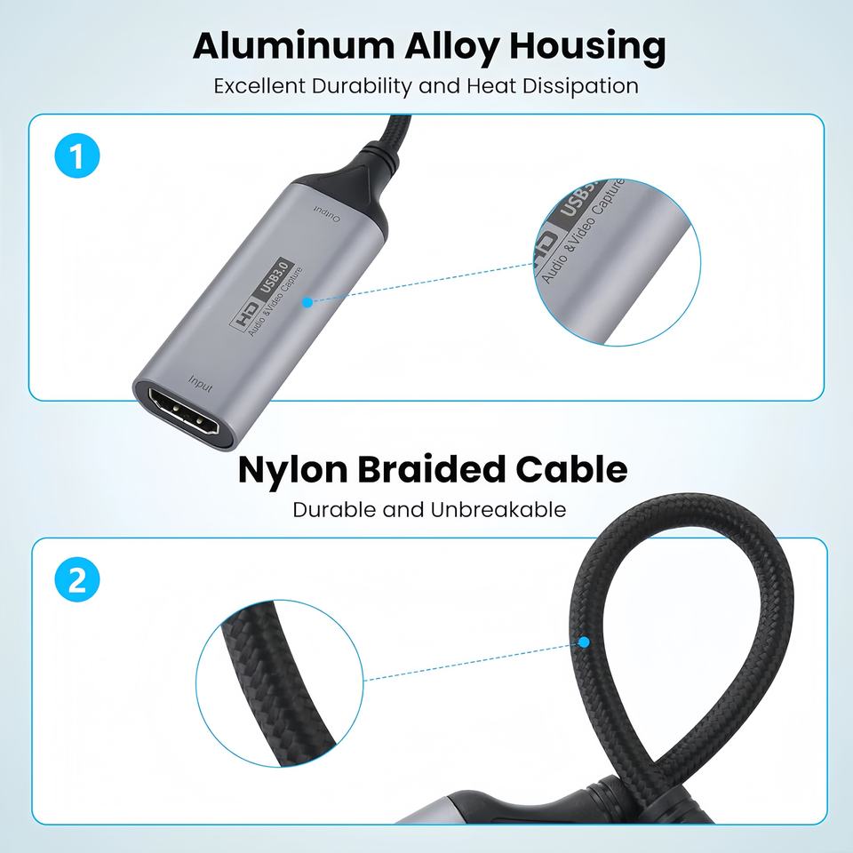 Carte d'enregistrement de capture vidéo compacte 4K HDMI vers 1080P USB-A/USB-C adaptée aux réunions de streaming vidéo de jeu et à l'enregistrement TV