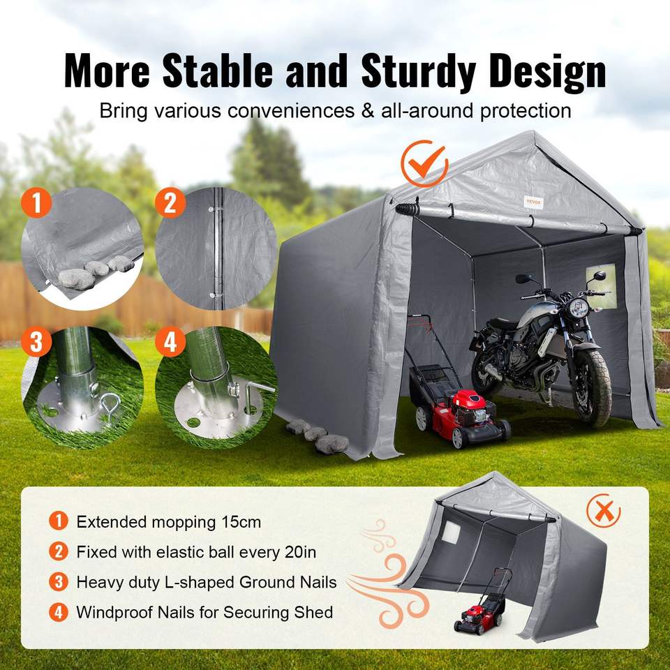 Abri de rangement extérieur compact 7x12x7,36 pi, auvent durable toutes saisons, tente à montage instantané, porte zippée roulante, conception respirante