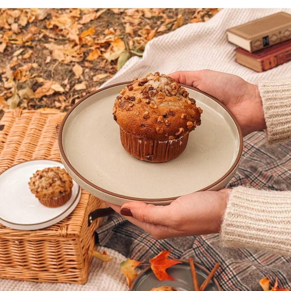 Assiette à dessert en céramique compacte de 8 pouces, finition brillante élégante et discrète, design empilable pour gagner de la place, idéale pour les pâtisseries et les friandises