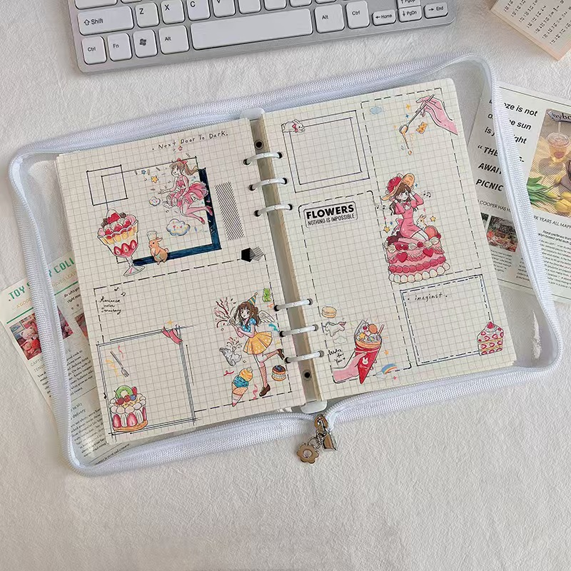 Protège-documents compact A5 avec fermeture éclair, pochette transparente en PVC, couverture de carnet à 6 anneaux