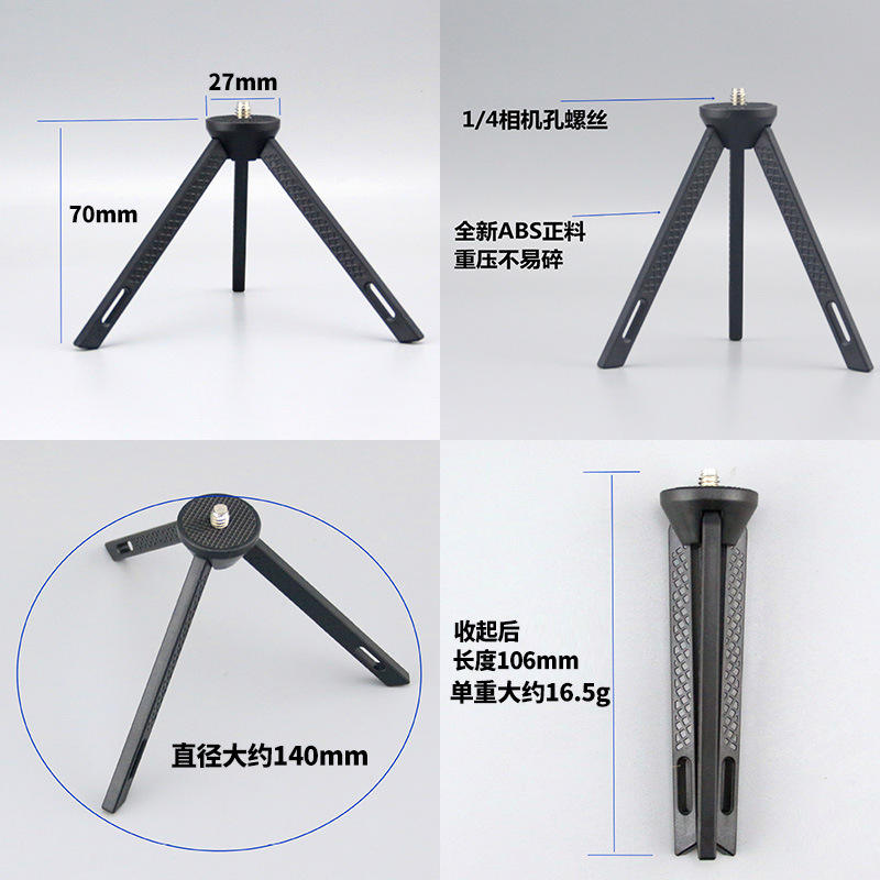 Trépied compact en ABS avec vis 1/4 pour lampes de poche, équipement photographique, lanternes de camping, noir T0029 3