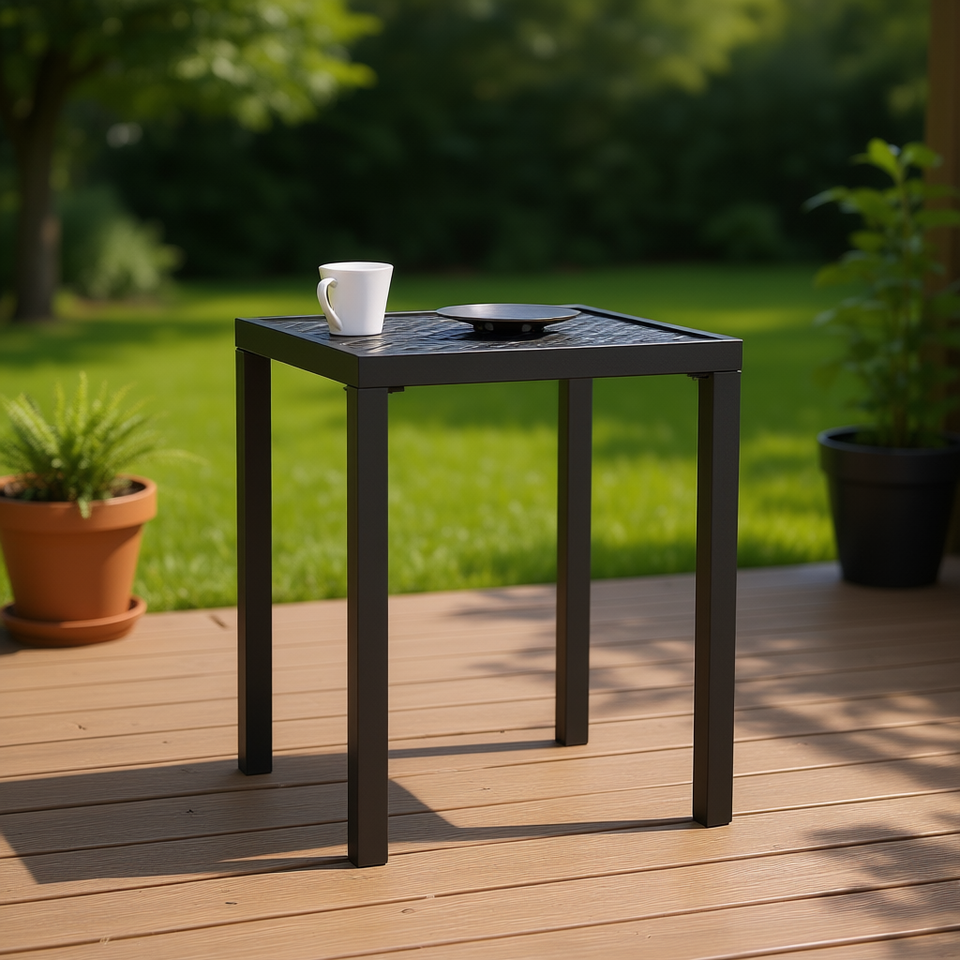 Table de jardin compacte en acier anthracite, design minimaliste, mobilier durable pour l'extérieur