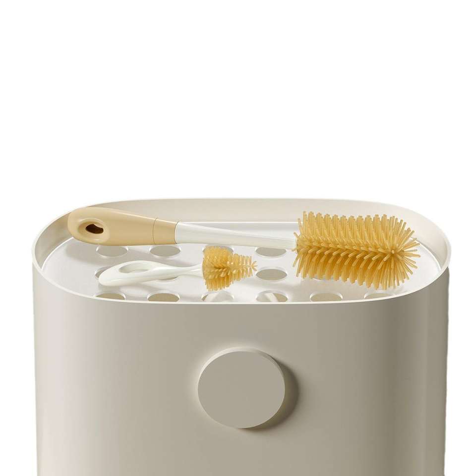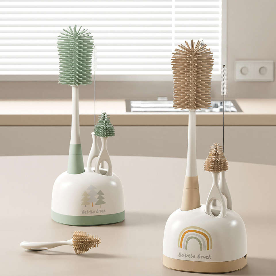 Kit de nettoyage compact pour biberons avec support, brosse à biberon en silicone et brosse à tétine à embout souple pour un nettoyage facile et sûr