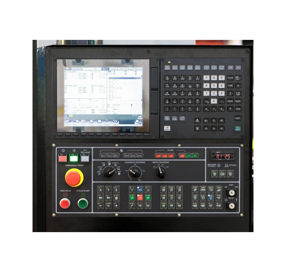 Système CNC compact pour tour et fraiseuse avec fonction PLC intégrée, écran LCD 8 pouces, interface USB et gestion de la durée de vie des outils