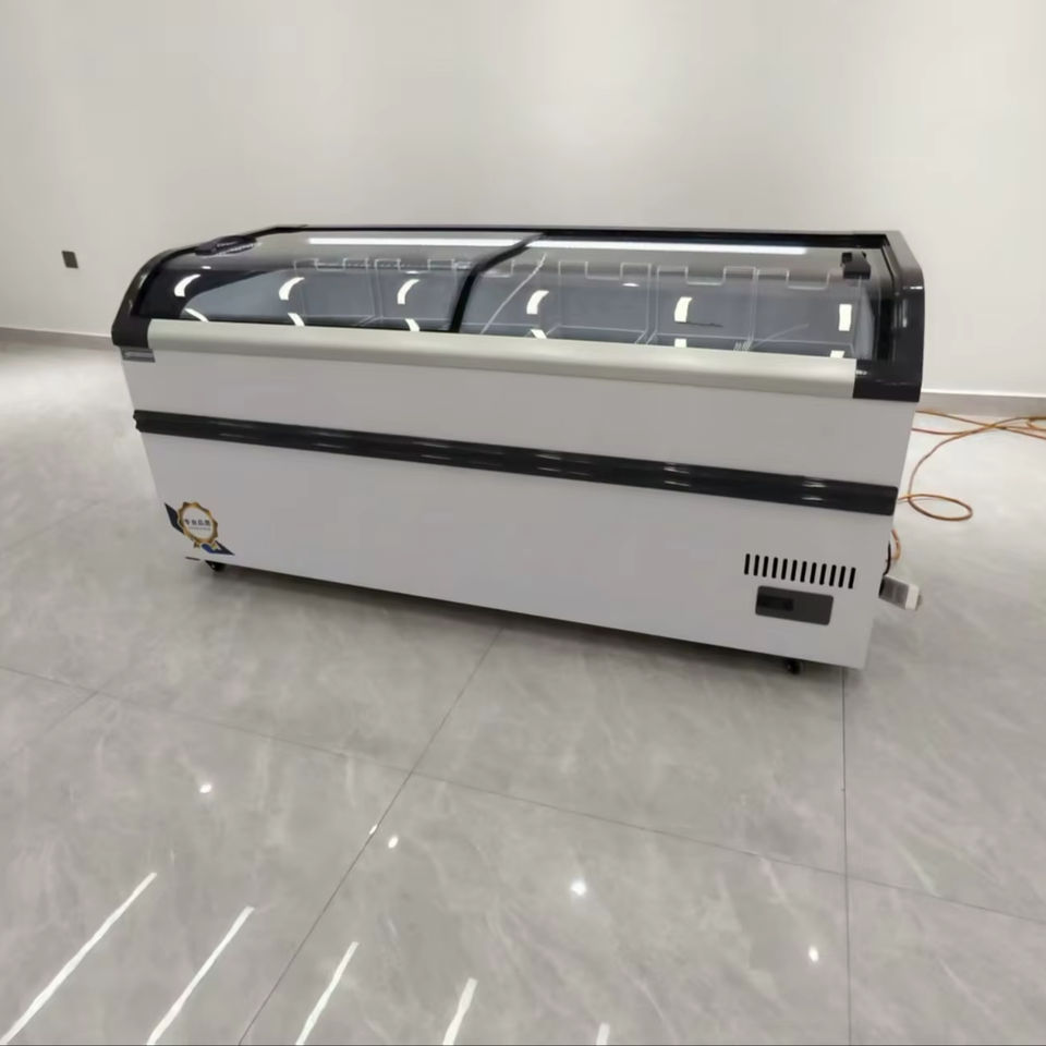 Congélateur coffre compact avec porte vitrée, affichage profond de la viande, utilisation en supermarché