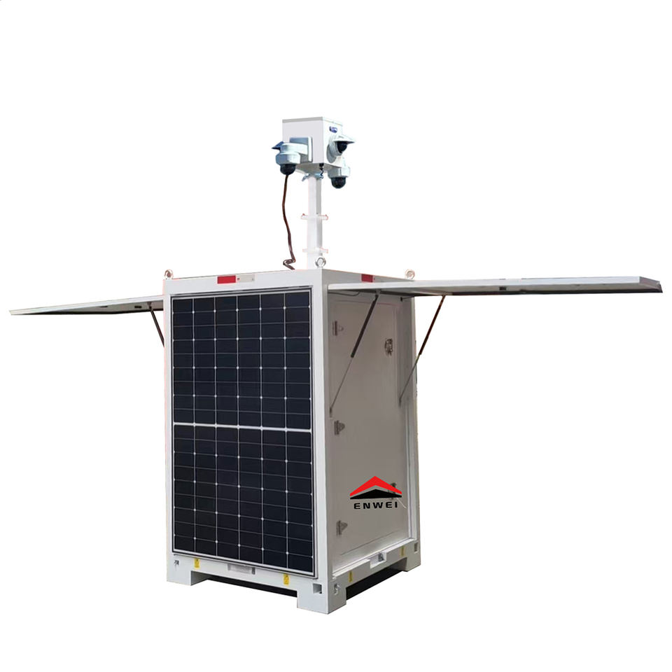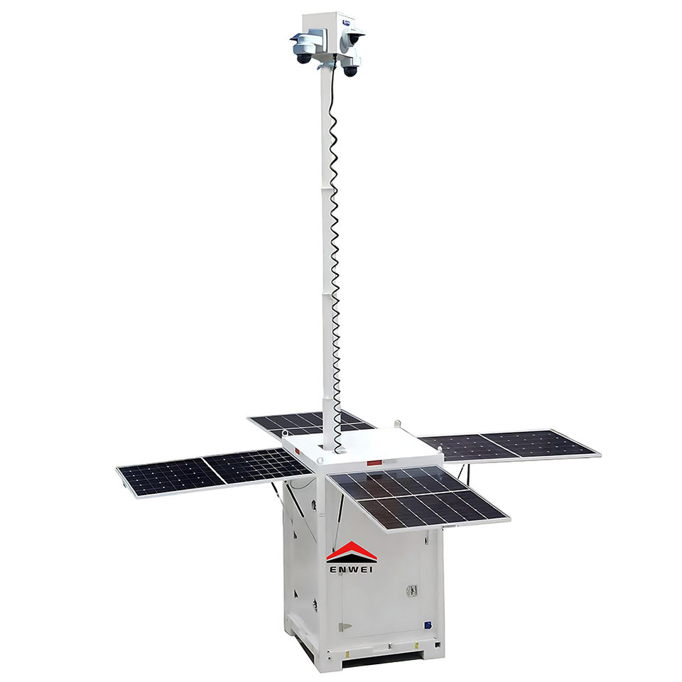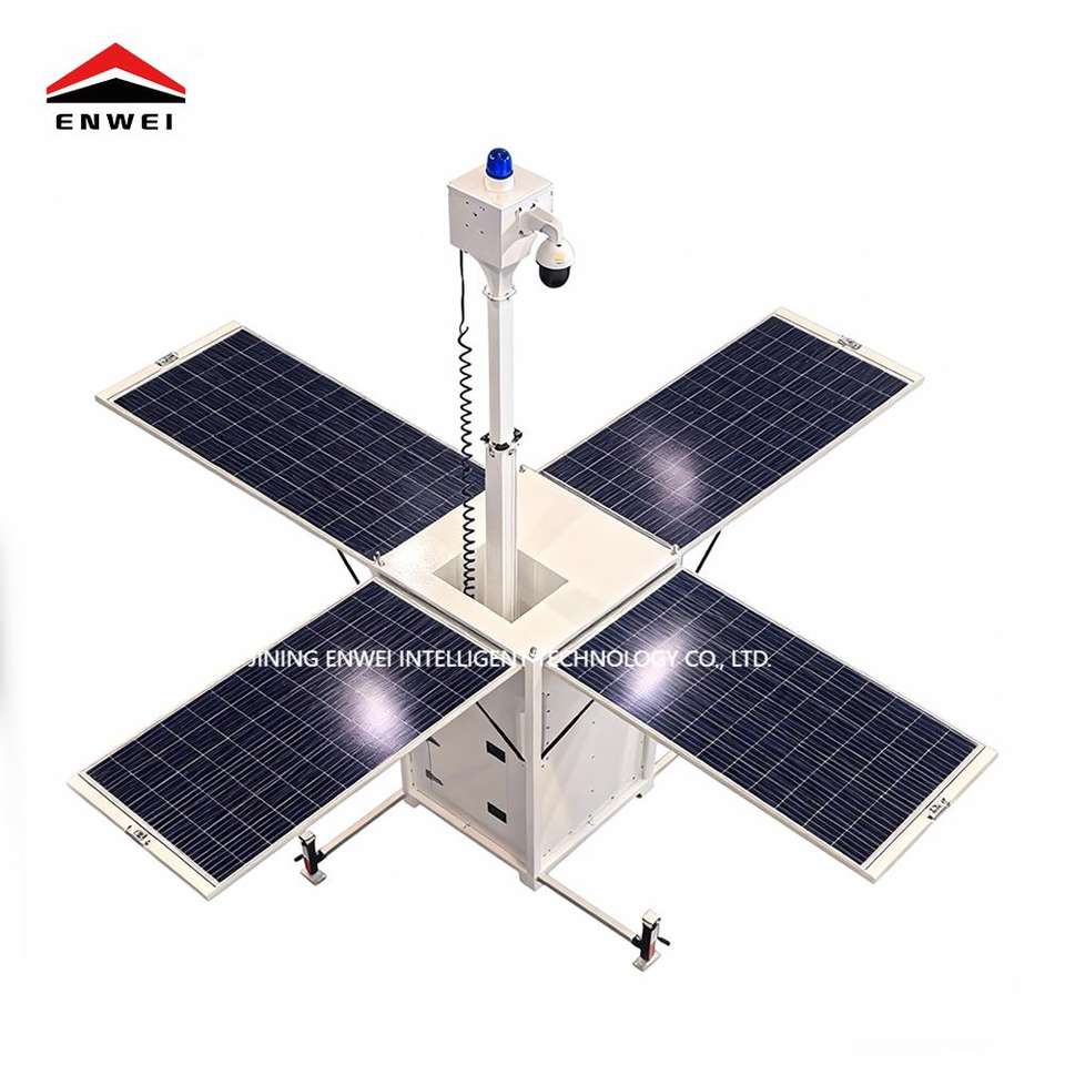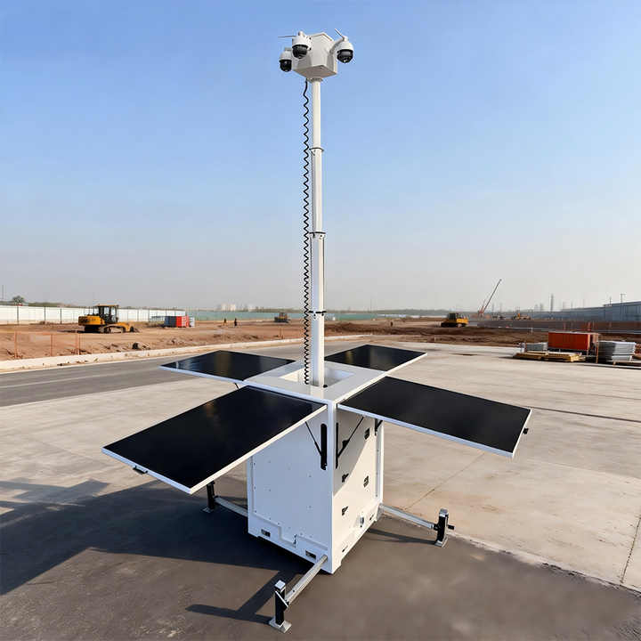 Tour de surveillance compacte pour chantiers extérieurs, quatre panneaux solaires, tour de vidéosurveillance mobile solaire à vendre