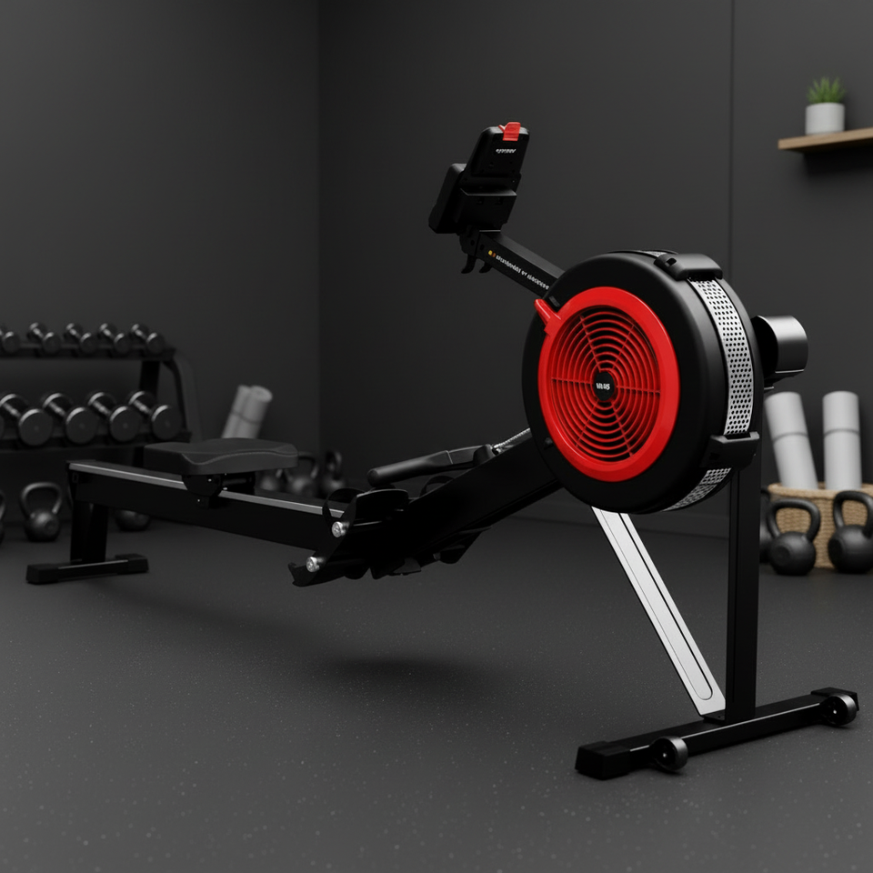 Compact Foldable Silent Steel Air Rower Rowing Machine Lithium Battery 10-Level Adjustable Resistance Durable Home Use
