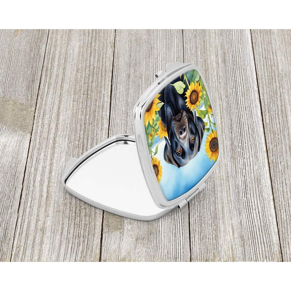 Miroir de maquillage portable pliant compact Labrador Retriever et tournesols miroir de voyage décoratif cadeau pour femmes et filles