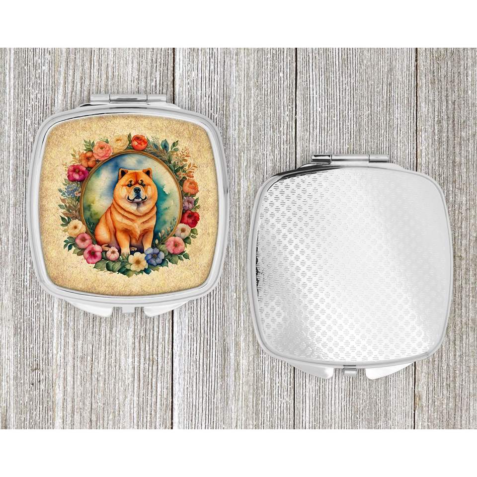 Miroir de maquillage à main pliant compact pour femmes et filles Chow Chow Fleurs Accessoire de voyage décoratif Idée cadeau de poche