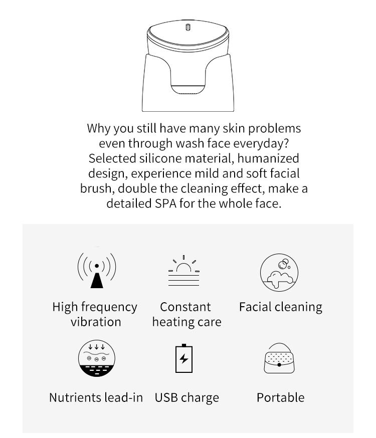 Brosse chauffante compacte en silicone pour le visage avec vibration pour une utilisation en voyage, nettoyage en profondeur des pores et apaisement de la peau