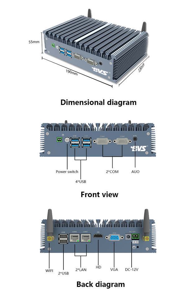 Mini ordinateur industriel compact à dissipation thermique élevée i3/i5/i7 8 Go + 128 Go Terminal Phoenix PC embarqué
