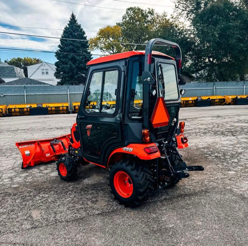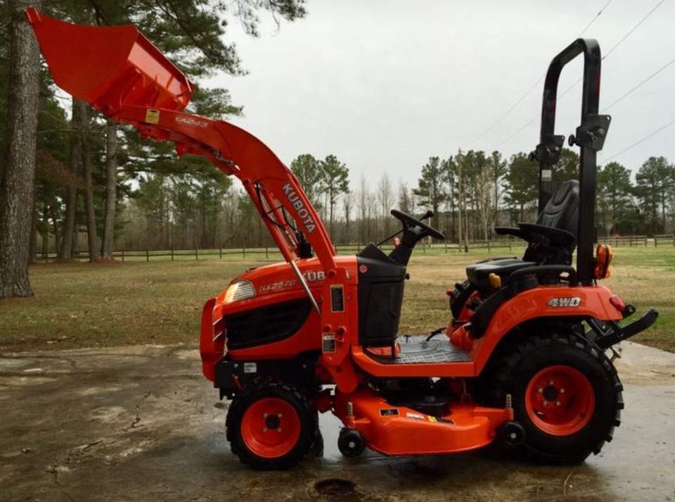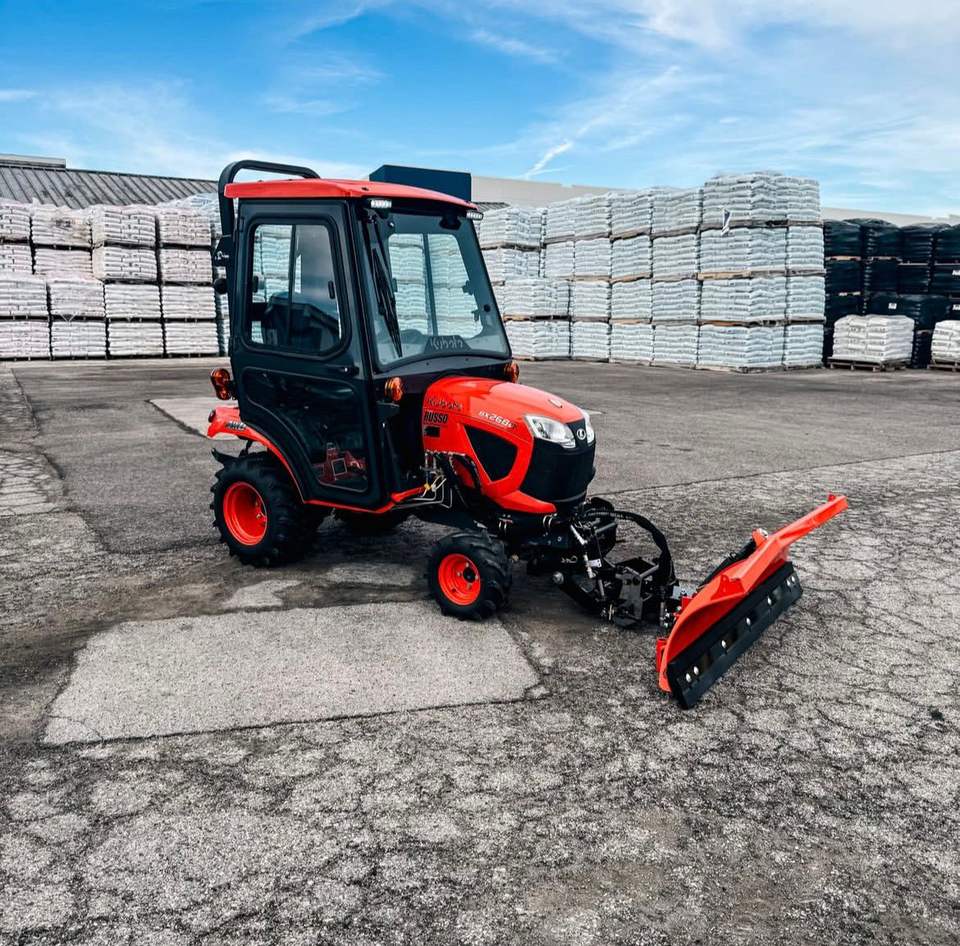 Tracteurs Kubota compacts avec tondeuse à montage central.