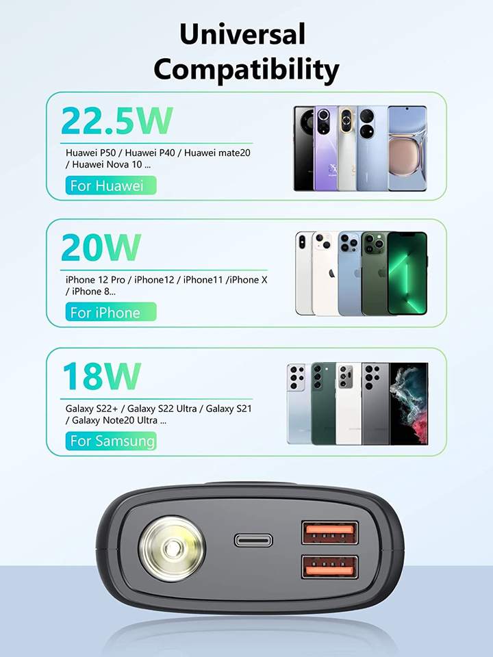 Nom du produit:Batterie Externe USB C PD20W SCP22.5W