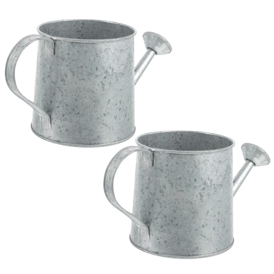 Arrosoir en métal compact avec finition en argent poli conçu pour les petits espaces plantes de bureau ou jardins de bureau