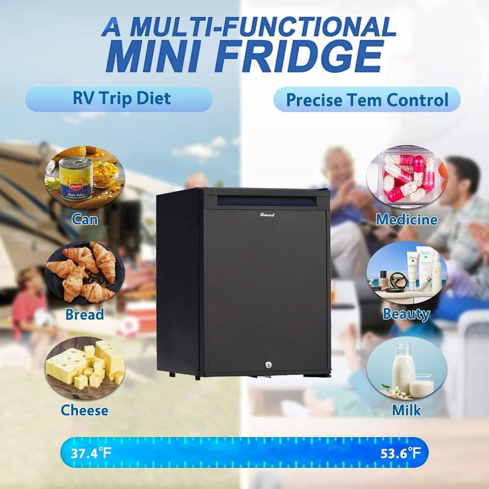 Mini-réfrigérateur compact silencieux avec absorption du bruit et verrouillage, 40L, pour camion, 110V/12V, 1,4 pi³, noir