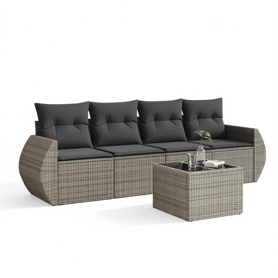 Ensemble de canapés de jardin modulaires compacts en polyrotin gris, mobilier d'extérieur moderne avec coussins en mousse haute densité, rotin PE résistant aux UV