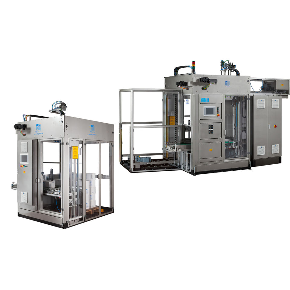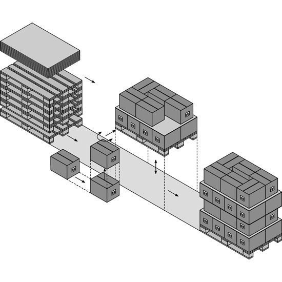 Palettiseurs compacts modulaires pour une palettisation monobloc peu encombrante avec un concept d'extension évolutif de A à D