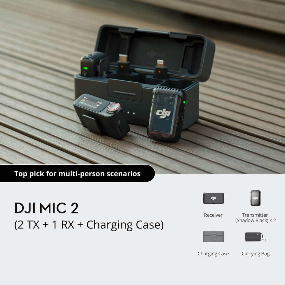 Compact Original (2TX+1RX+Charging Case) Wireless Microphone for Mic 2 820ft Audio Range 18H Battery Noise Canceling Stream