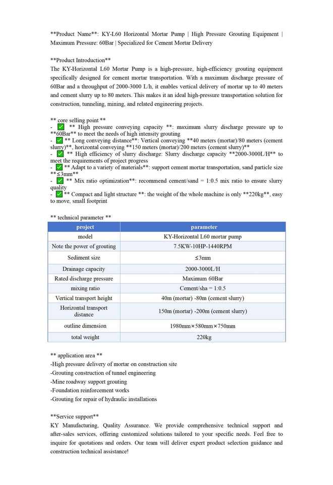 Hauteur de transport vertical:40 m (mortier) - 80 m (boue de ciment)