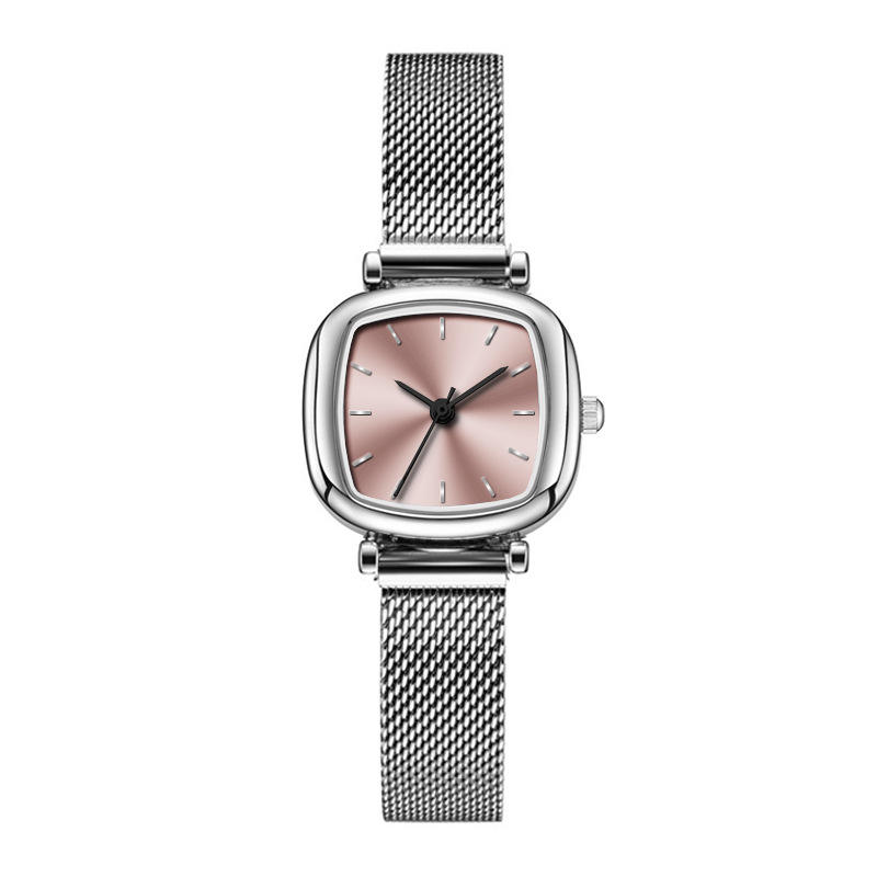 Montre compacte rétro artistique à cadran carré pour étudiante, décontractée, avec fenêtre en verre, bracelet en maille d'acier et bracelet en plastique de type pièce de monnaie