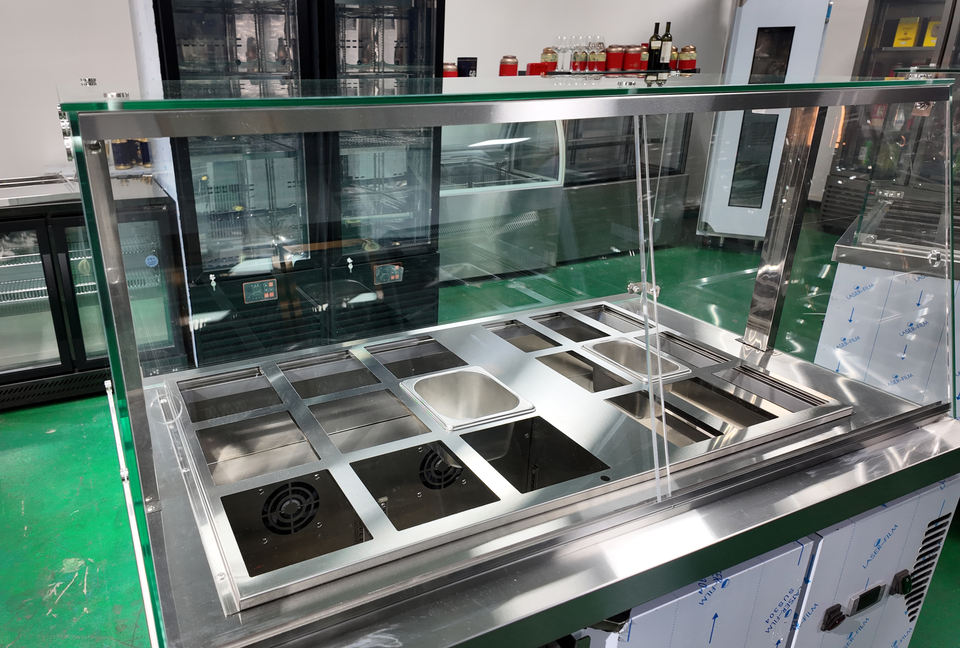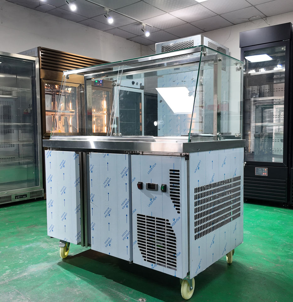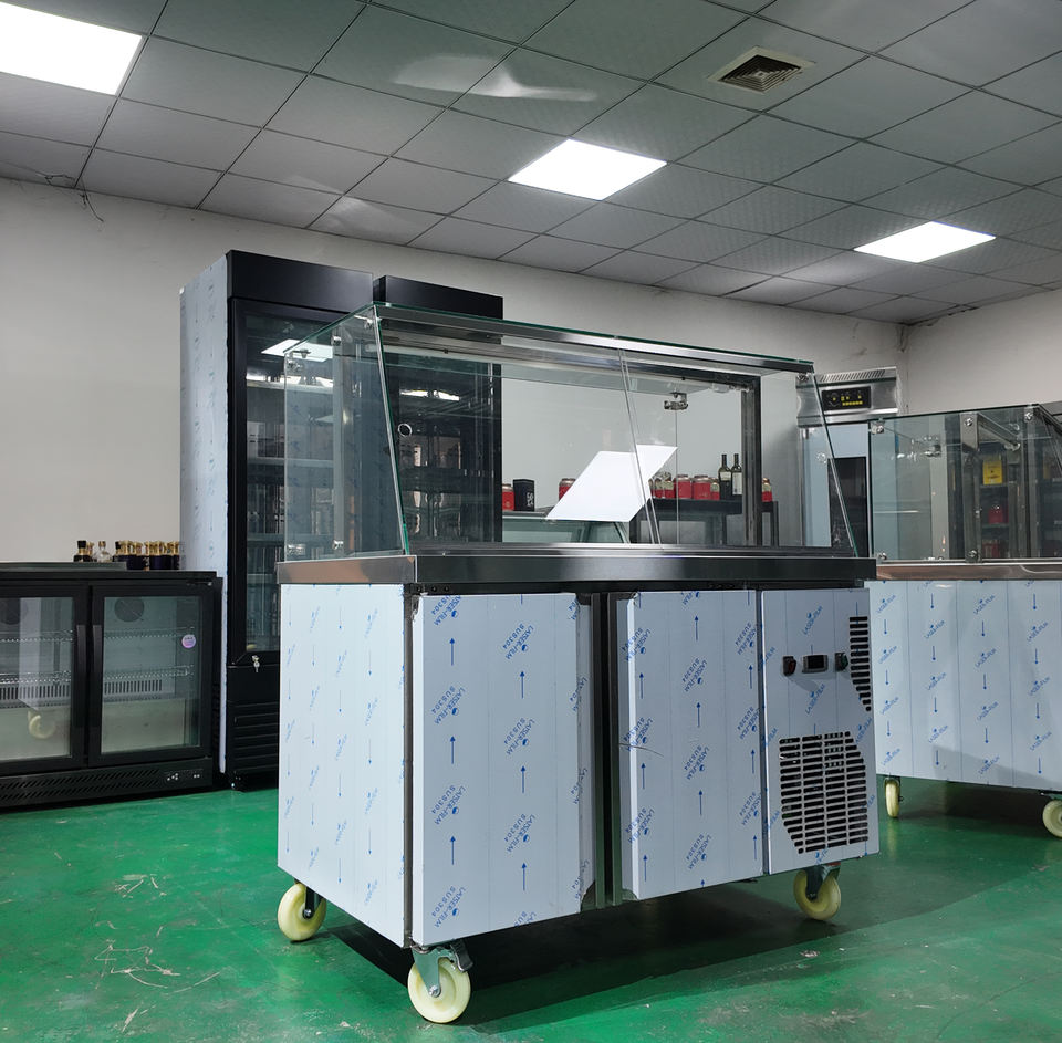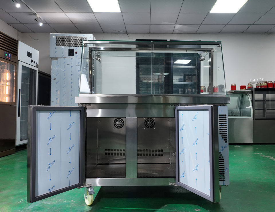 Table de préparation de salades compacte sous comptoir, réfrigérateur à salades 2 portes, comptoir à salades commercial en acier inoxydable pour café