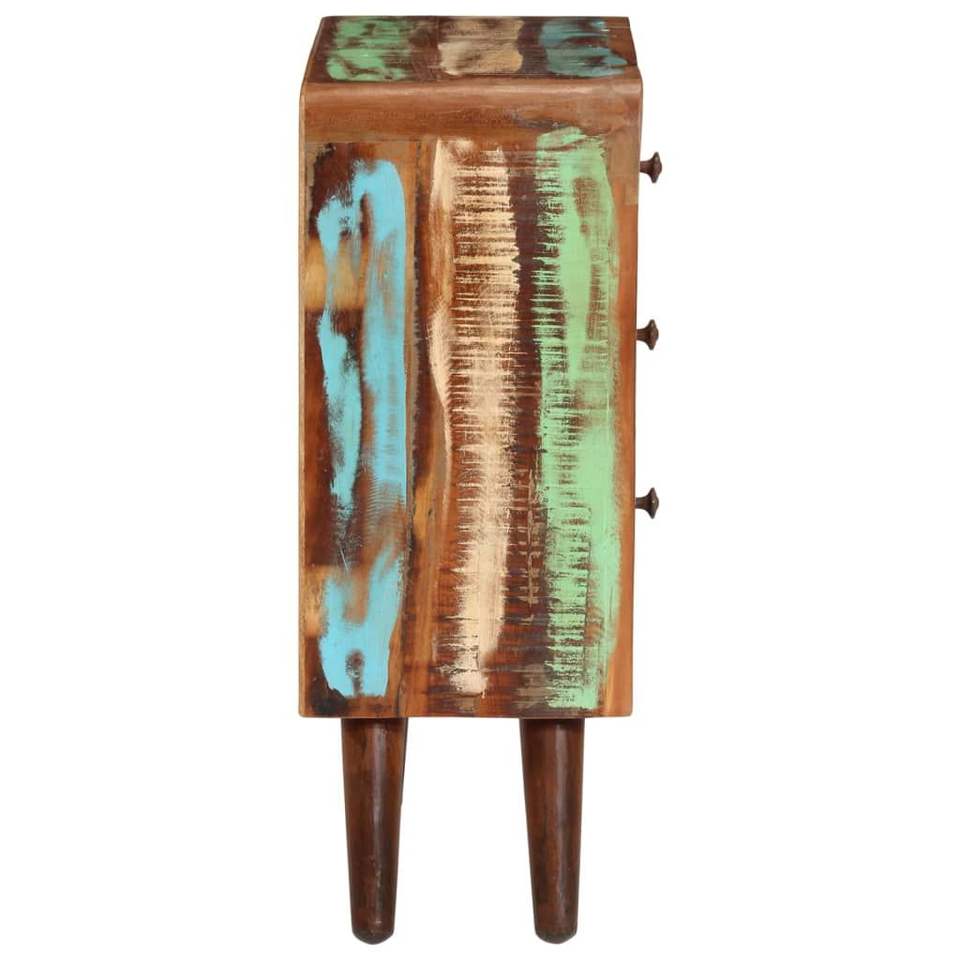 Buffet compact en bois massif recyclé avec finition multicolore et accents métalliques