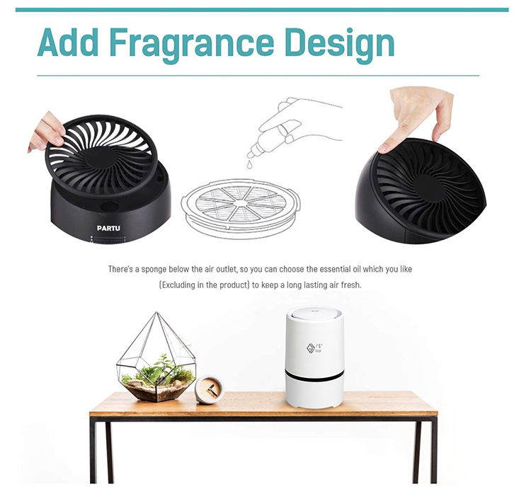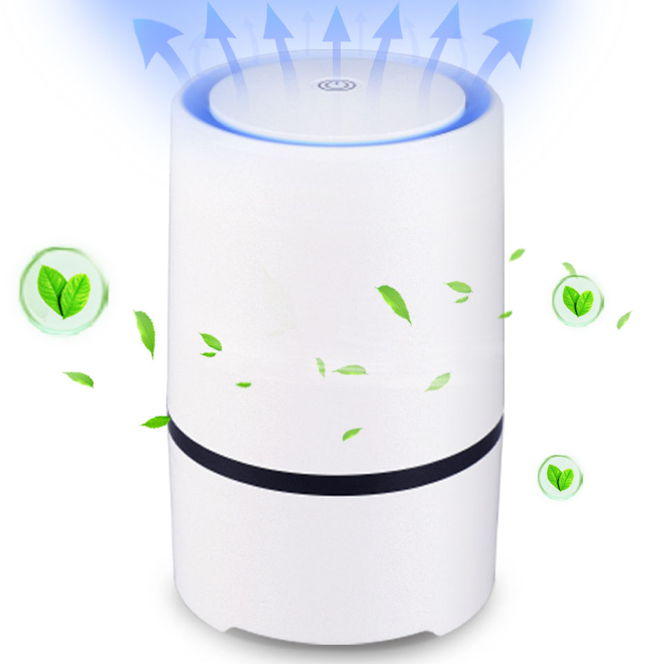 Purificateur d'air compact alimenté par USB avec filtre HEPA haute efficacité, filtre à charbon actif, ioniseur et tampon à huiles essentielles