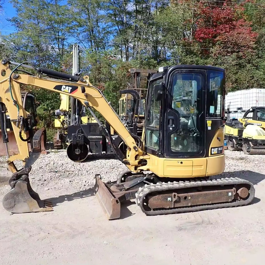 Mini-pelle compacte d'occasion de 3 tonnes, jaune, avec rotation à 360 degrés et chenilles en caoutchouc pour l'aménagement paysager résidentiel de précision