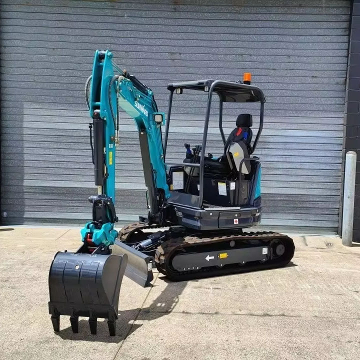 Mini-pelle compacte d'occasion de 3000 kg, jaune, avec lame de bouteur avant et chenilles en caoutchouc pour un nivellement résidentiel précis