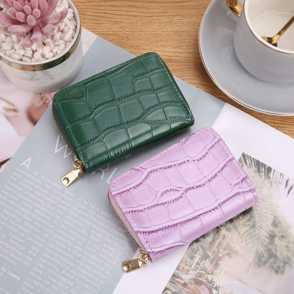 Portefeuille compact pour femme avec texture d'alligator et plusieurs emplacements pour cartes, fabriqué en PVC durable pour les voyages et le travail