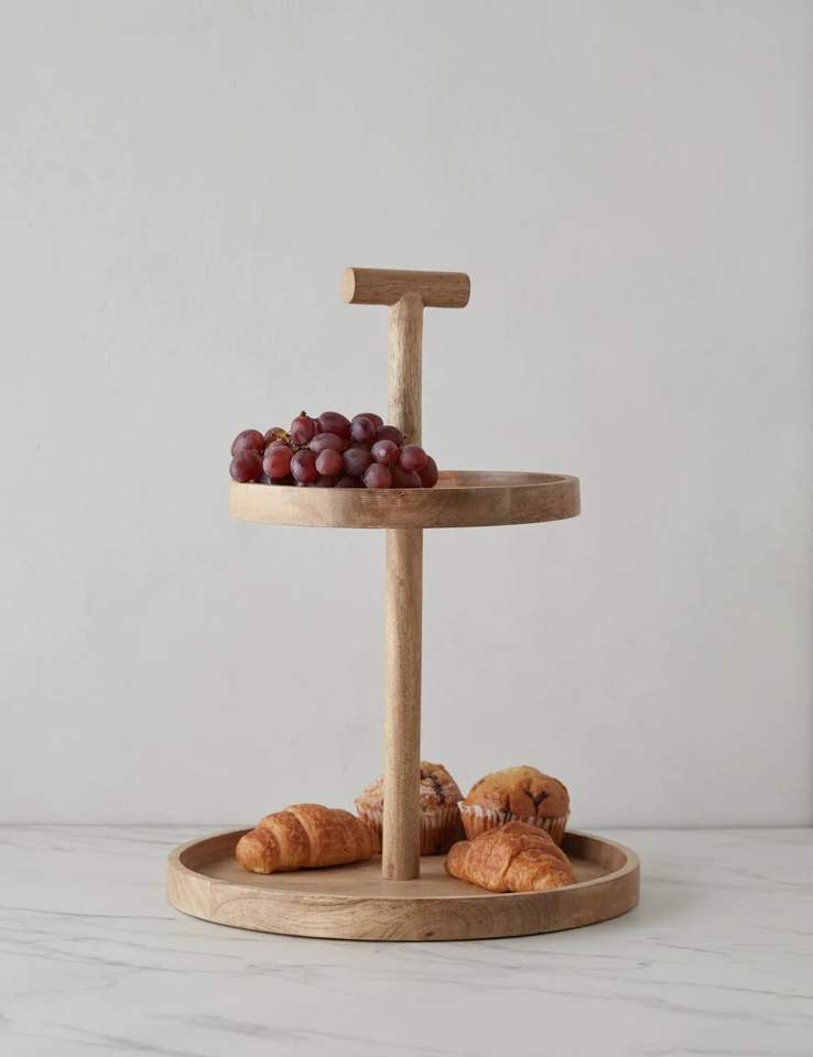 Support à gâteau compact en bois pour la présentation de desserts dans les petites cuisines, avec un matériau durable et une finition de surface lisse