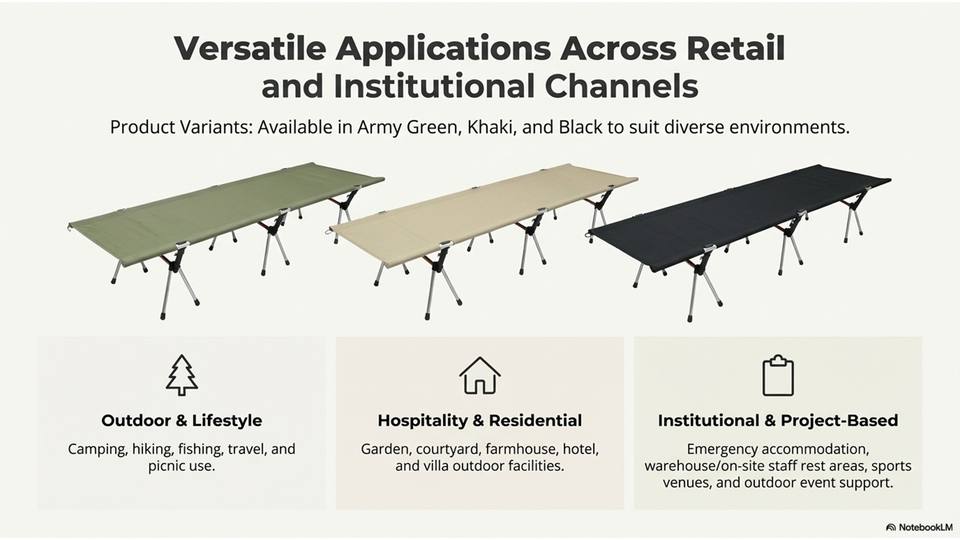Lit de camping moderne, compact, pliable et réglable en hauteur, avec cadre en aluminium, pour les randonneurs, les aventures en plein air, les parcs, les chambres et les hôpitaux