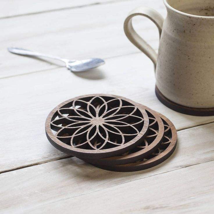Sous-verres compacts en bois à l'élégance rustique et au charme fonctionnel adaptés aux tables basses ou aux comptoirs de cuisine