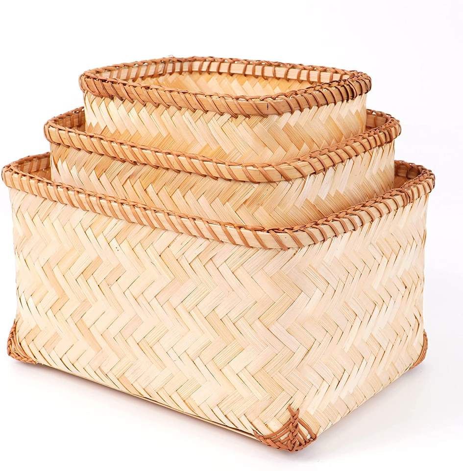 Panier de rangement en bambou tissé de haute qualité, organisateur de maison, prix avantageux en vente !