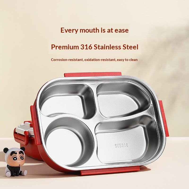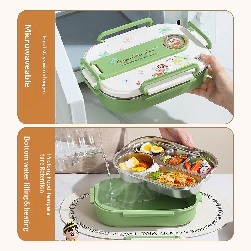 Boîte à lunch compartimentée carrée, isolée, compatible micro-ondes, en acier inoxydable 316, pour étudiants, enfants, dessin animé, portable