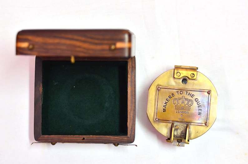 Boussole Antique Travail Lourd Enquête Boussole En Laiton Avec Caisse En Bois Cadeau Pour Homme Marin