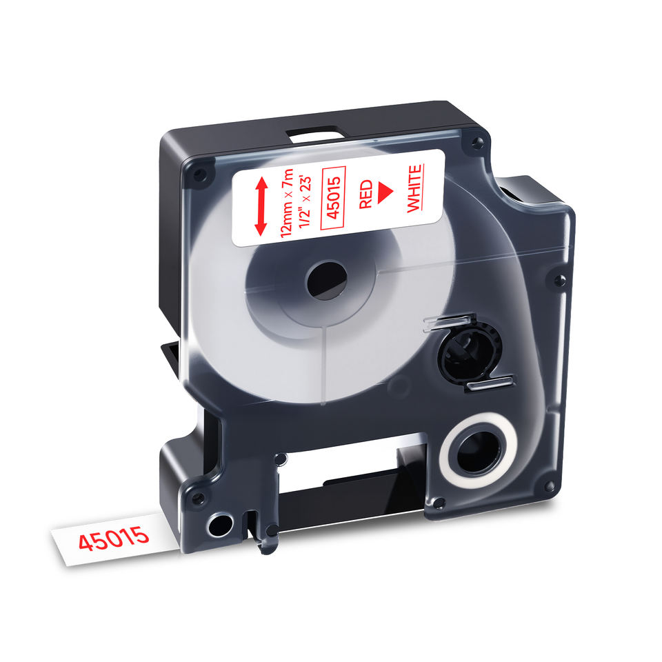 Ruban adhésif thermique compatible DYMO D1 45015 rouge sur blanc 12 mm pour imprimantes LabelManager LM160