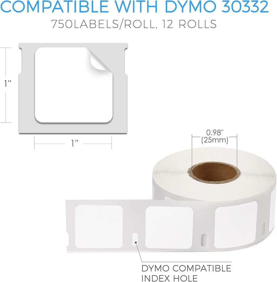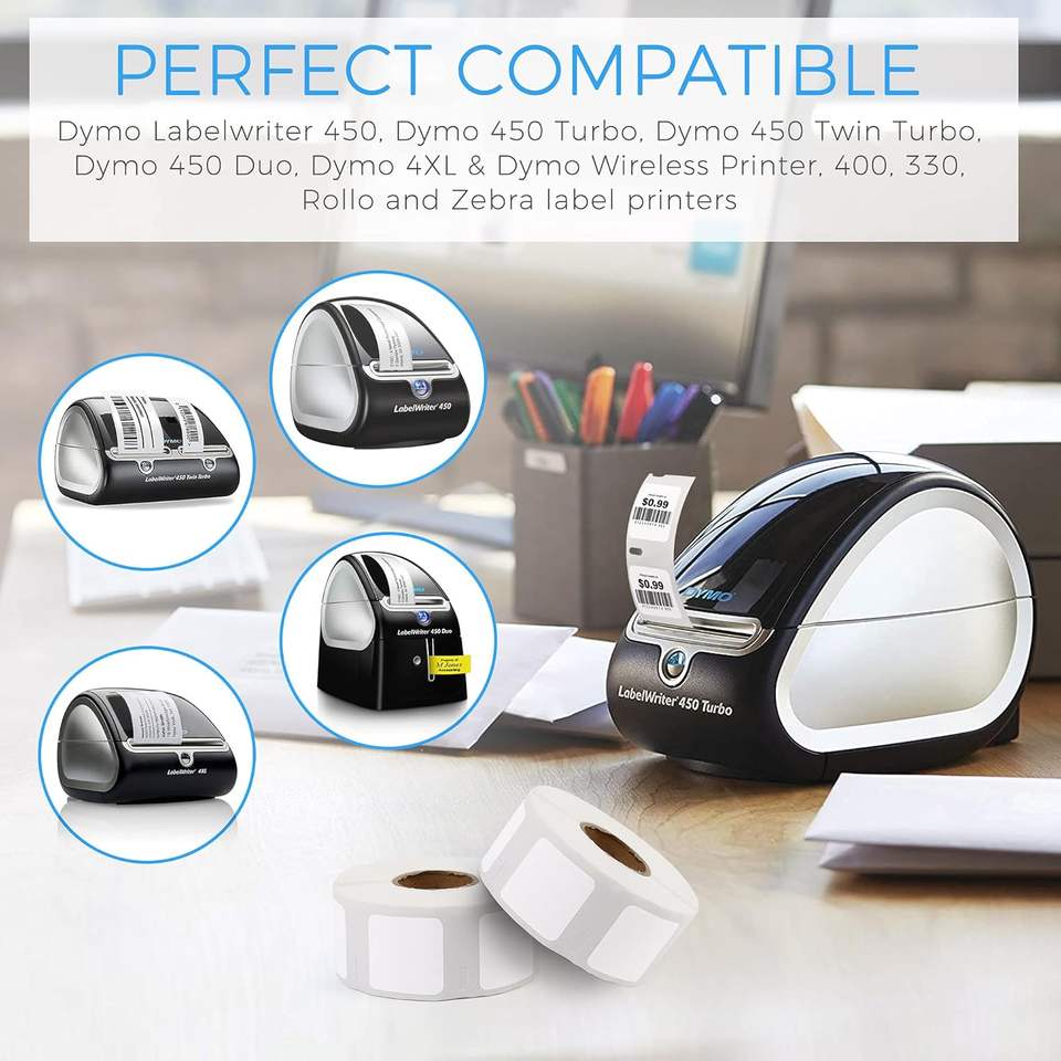 Étiquettes thermiques compatibles A30332 (1 "X 1") Étiquettes carrées polyvalentes avec les imprimantes de bureau DYMO Labelwriter 450/4XL et Zebra