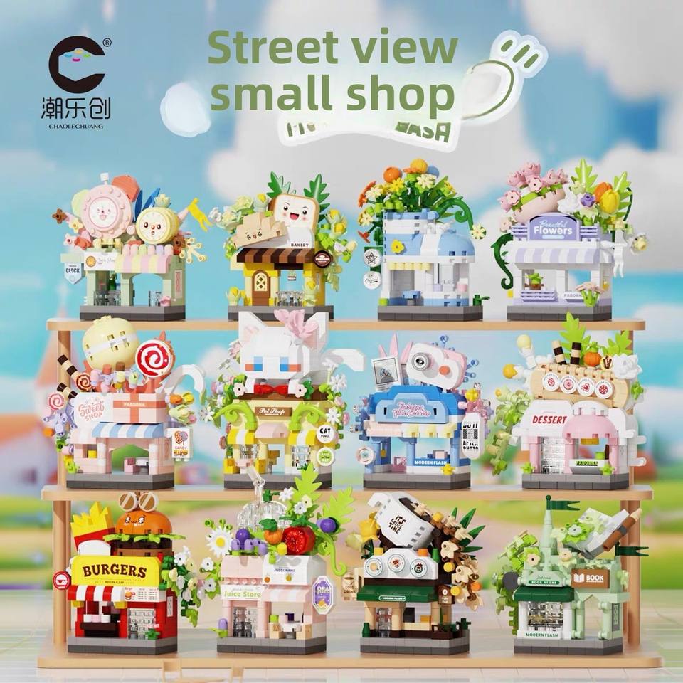 Compatible avec le chariot de vente ambulante Dream Town, boutique de fleurs, scène de rue de la ville, 40 pièces, blocs de construction éducatifs en plastique ABS pour