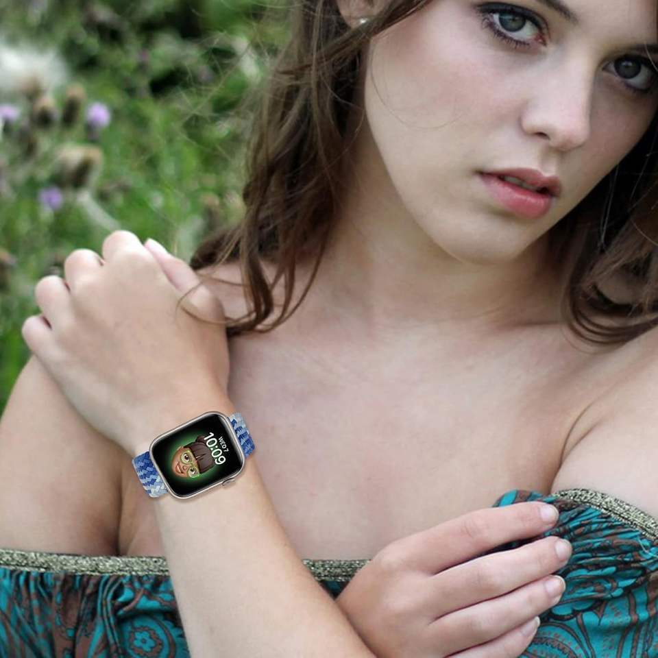 Compatible with Apple Watch Band 38/40/41/42/44/45/46/49mm for Women Men,Stretchy Braided Apple Watch Strap for IWatch Series