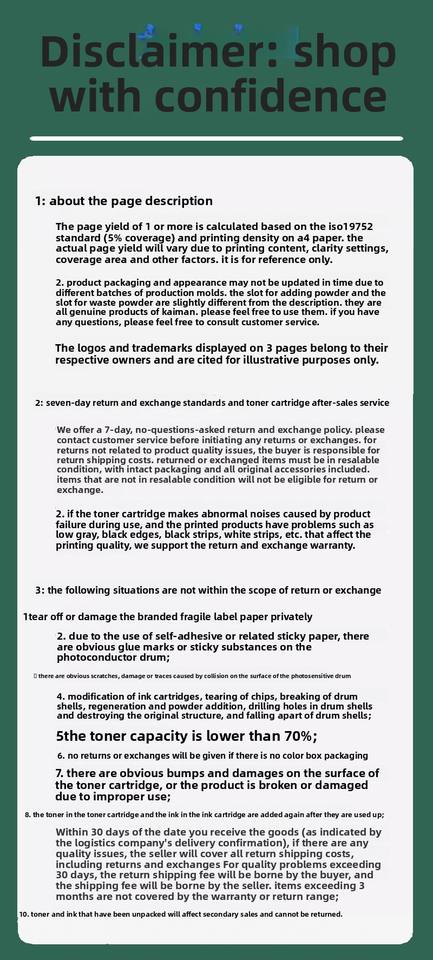 Demandez un remboursement si votre commande n'est pas expédiée, est introuvable ou arrive avec des problèmes liés au produit