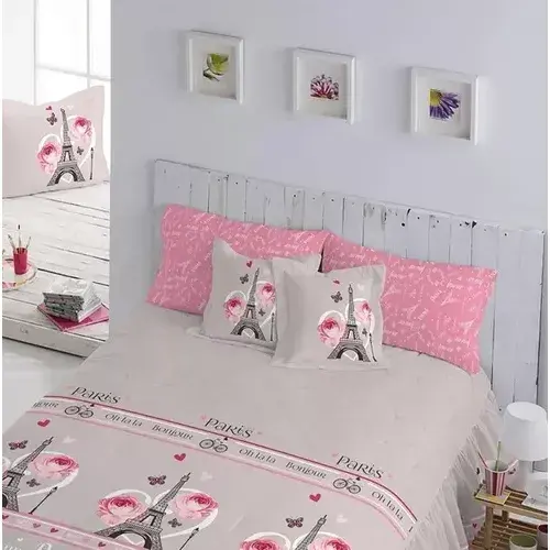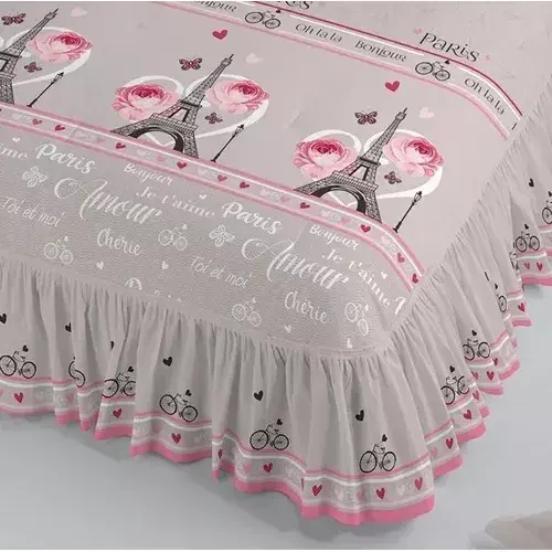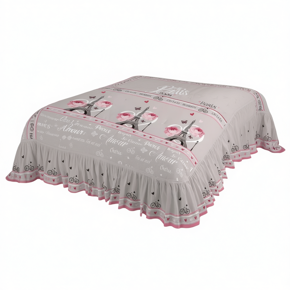 Ensemble de literie de style princesse avec volants floraux, compétition Juliette Paris Quilt King Size 3 pièces