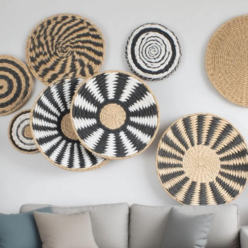 Prix Compétitif Décoration Murale Bohème Panier Mural Tressé Suspendu en Jonc de Mer Rotin Osier Style Art Déco pour Affichage en Salon